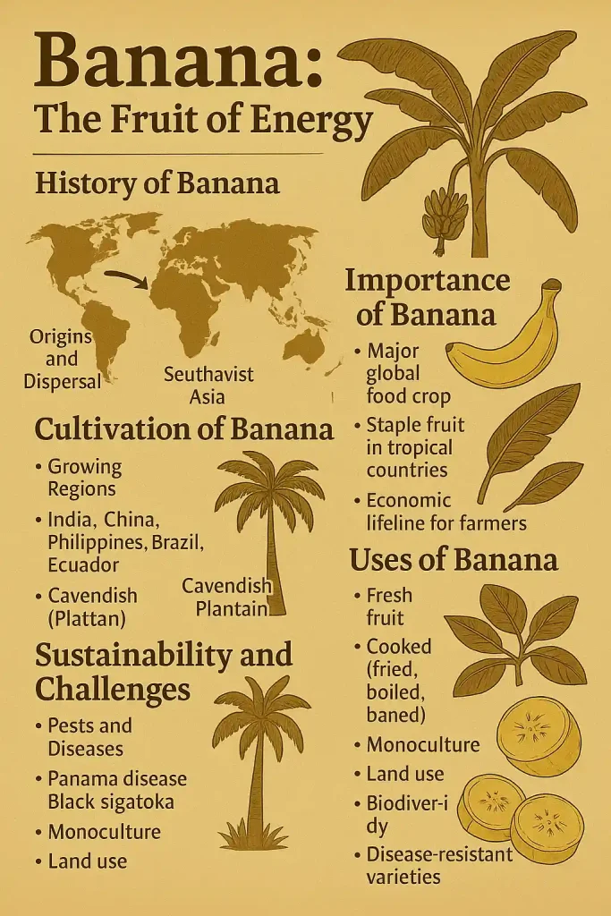 In 2025, bananas remain one of the most consumed fruits worldwide. Yet, fungal diseases and climate change significantly threaten global banana production. This article examines the scientific and historical aspects of bananas. It covers their nutritional benefits, the diseases that endanger them, and more. Bananas offer more than a tasty treat—they reveal a story of human ingenuity and connection with nature. Let’s start with their origins and history.