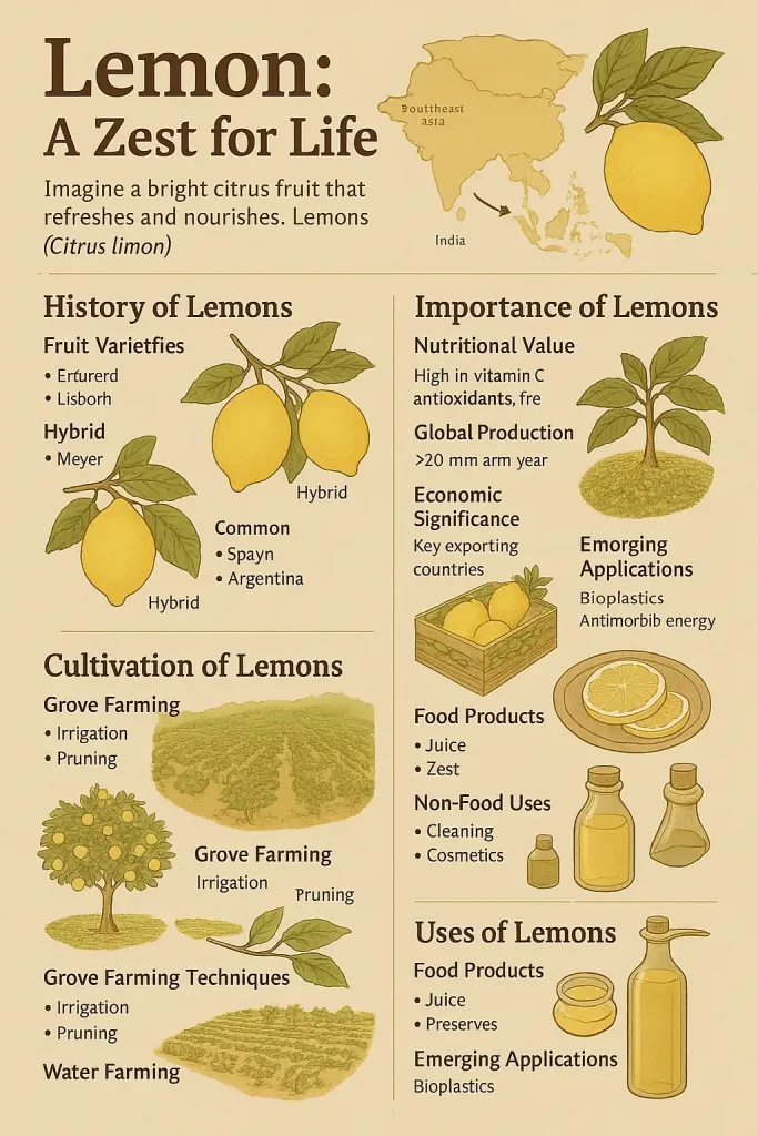 Lemons got their start around 2000 BCE in India’s Assam region, where wild citrus fruits were the scrappy underdogs of the fruit world. Early farmers played matchmaker, crossing citrons with sour oranges to create the tart, juicy lemons we know today. Lemon cultivation wasn’t just gardening—it was a game of fruity innovation.
