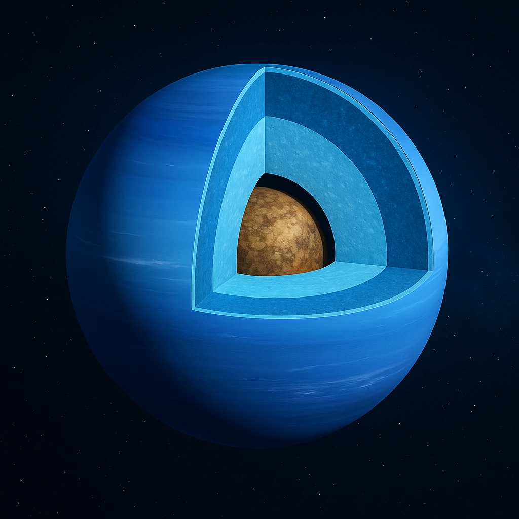 Neptune formed 4.5 billion years ago during the solar system’s early days, a time of cosmic creation. Initially, it started as a protoplanet in the cold, outer regions of the solar nebula, where ices could condense. Over millions of years, gas, ice, and rocky material came together under gravity’s pull. For instance, hydrogen, helium, and ices such as water, ammonia, and methane built its massive structure. Additionally, Neptune has a rocky core, roughly the size of Earth, estimated at 12,742 kilometers in diameter. The core, consequently, reaches temperatures of 5,000°C (9,000°F) due to intense gravitational pressure. Meanwhile, its mantle contains water, ammonia, and methane ices in a dense, fluid state. A thick gaseous atmosphere, rich in hydrogen and helium, surrounds it all. Furthermore, Neptune’s mass, 17 times Earth’s, makes it the fourth-largest planet in our solar system. It also has a strong magnetic field, tilted 47 degrees from its axis, creating unique auroras. Therefore, this makes Neptune a distinct ice giant in our cosmic neighborhood.