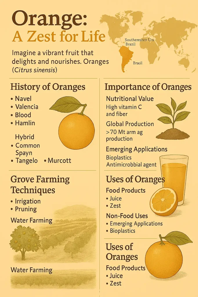 In summary, oranges have shaped human history and health for millennia. Originating in Southeast Asia, they traveled the Silk Road to become global staples. Their vitamin C content, with 75 mg daily recommended for women, boosts immunity and heart health. From Chinese mandarins to Indian nagpur oranges, their diversity enriches diets. Oranges remain a vibrant fruit, blending tradition with nutrition.