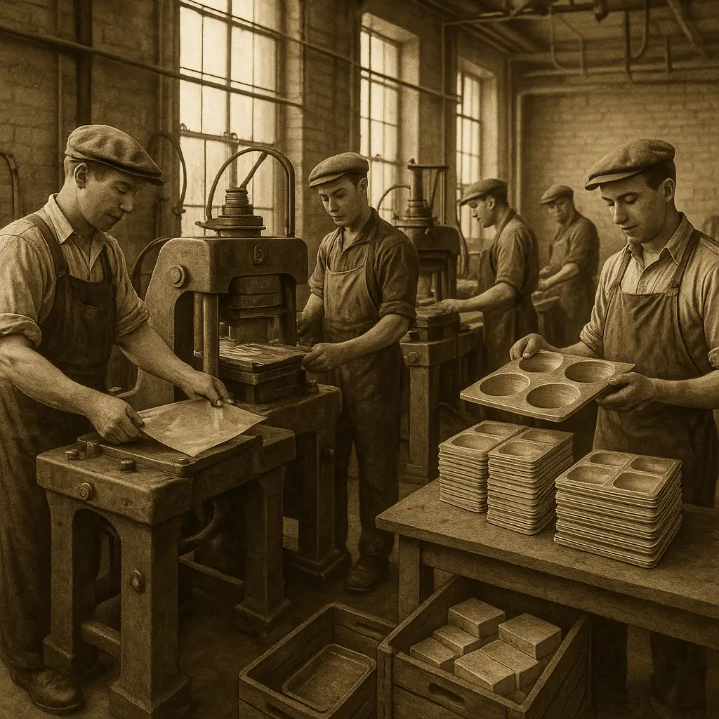 In 1907, Leo Baekeland invented Bakelite in the U.S., the first fully synthetic plastic, free of natural molecules. Designed as an electrical insulator, Bakelite fueled electrification, appearing in radios and phones. Its heat resistance made it a game-changer. Notably, plastic history advanced during World War II, with nylon—created in 1935 by Wallace Carothers—replacing silk in parachutes. This wartime push cemented plastics’ industrial role.