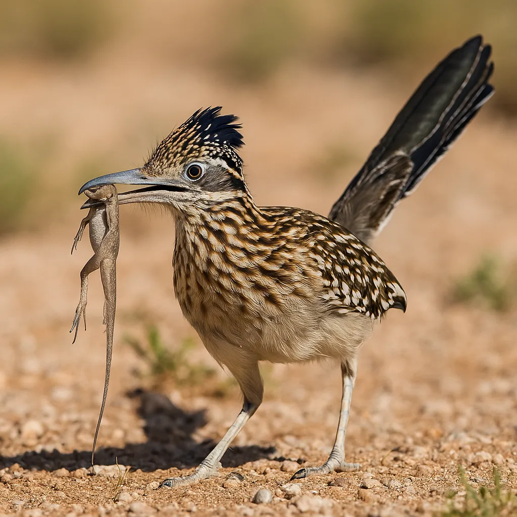 What is a roadrunner’s behavior? It’s a predator hunting diverse prey. It eats insects, lizards, snakes, and small birds, using speed to catch them. For example, it kills rattlesnakes by striking and dodging. Most hunting happens during the day, as it’s a diurnal bird active in sunlight. Moreover, it eats fruit or seeds when prey is scarce. This diet aids survival in tough times.
